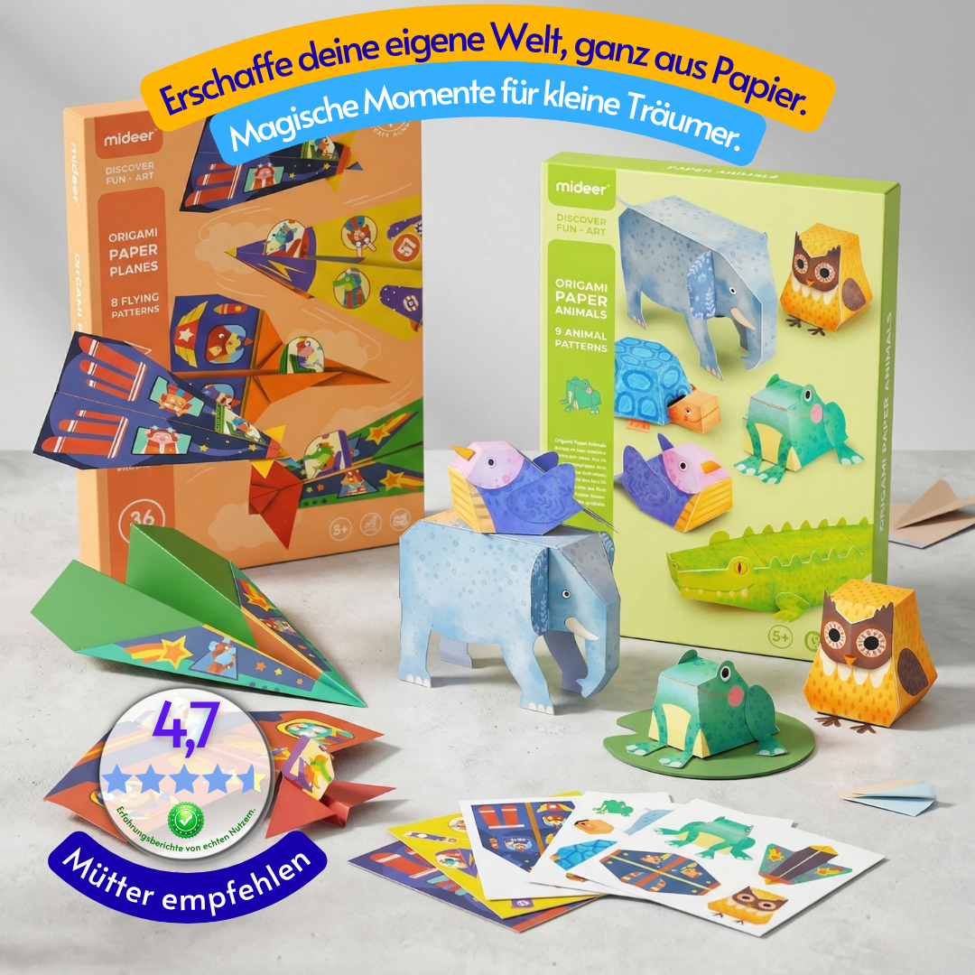 Unsere Sets sind weit mehr als nur Zeitvertreib. Sie fördern gezielt die Feinmotorik, die Augen-Hand-Koordination und die Konzentrationsfähigkeit. Besonders unsere Origami- und Design-Sets stärken das räumliche Vorstellungsvermögen und das ästhetische Empfinden – ganz ohne Bildschirm (Bildschirmfrei).